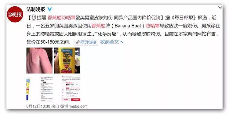 而這位寶貝并不是第一個使用香蕉船牌防曬霜后出現(xiàn)“皮膚燒傷”的孩子。