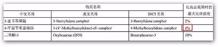 這種成分也需要警惕—— 4-甲基芐亞基樟腦。