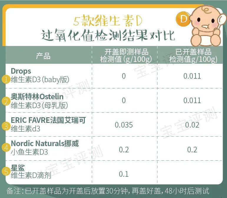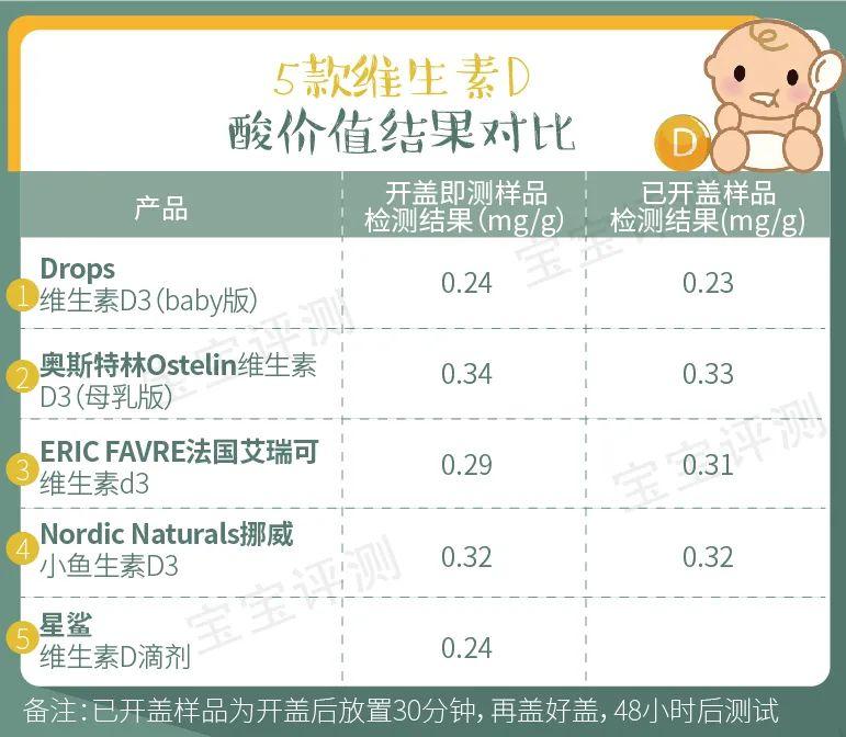 從測(cè)試數(shù)據(jù)來(lái)看,嬰兒版和兒童版的維D實(shí)測(cè)值都相對(duì)比較接近標(biāo)稱(chēng)值,符合國(guó)標(biāo)規(guī)定。油脂質(zhì)量的表現(xiàn)同樣,過(guò)氧化值為0,酸價(jià)值也低。