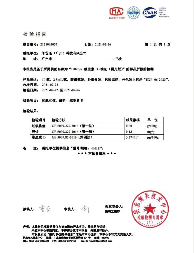 為了驗(yàn)證這款產(chǎn)品品質(zhì)的穩(wěn)定性,2021年2月,笨爸爸又將這款產(chǎn)品重新再進(jìn)行了一次測(cè)試,這次既測(cè)試了嬰兒版(400IU/滴,2.5ml/瓶,90滴),同時(shí)也測(cè)試了其兒童版(600IU/滴,2.8ml/瓶,100滴)。
