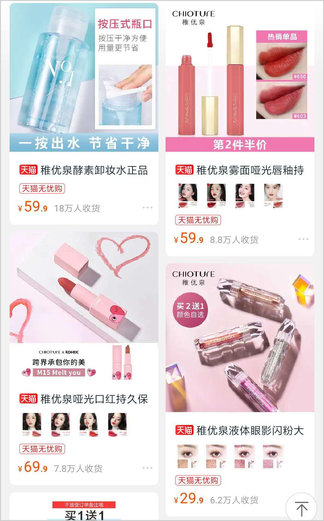 有聲音指出,在一眾中,稚優(yōu)泉和美康粉黛取得這樣不俗成績(jī)的共通之處在于:以極為優(yōu)廉的價(jià)格迅速拉攏人口基數(shù)占比較大的一般年輕女性群體,其中尤以尚無(wú)收入的女大學(xué)生群體和低線城市年輕女性群體為主。她們對(duì)化妝品的要求不會(huì)太專業(yè),護(hù)膚追求“佛系”簡(jiǎn)單,雖然化妝品消費(fèi)占比基數(shù)大,但常常處于被一線品牌“忽視”的位置,“點(diǎn)滴流水匯之以江河”,借助“長(zhǎng)尾效應(yīng)”取得品牌整體高額成交量也是情理之中的事了。