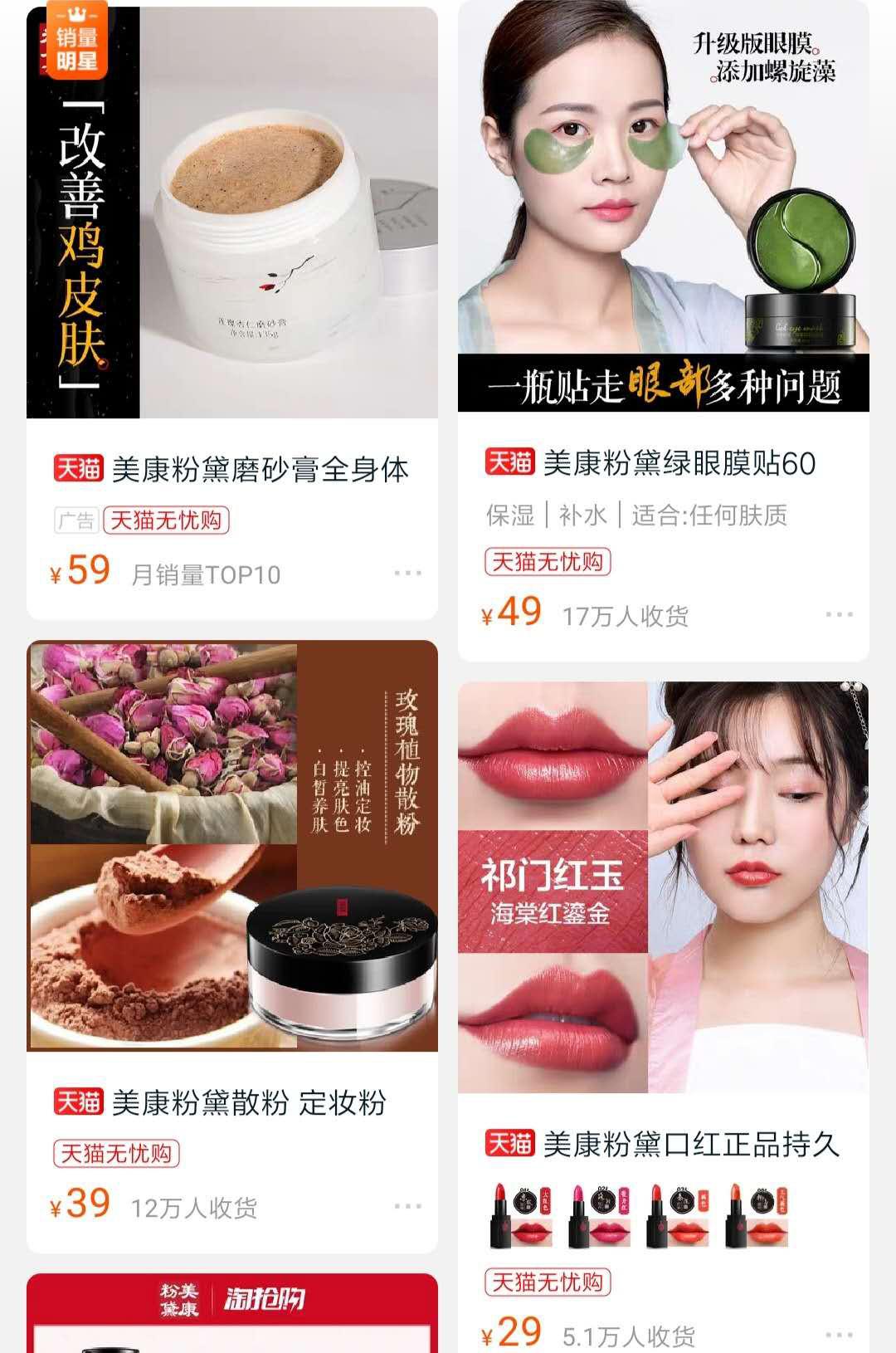 (圖為美康粉黛部分產(chǎn)品天貓銷量截圖)