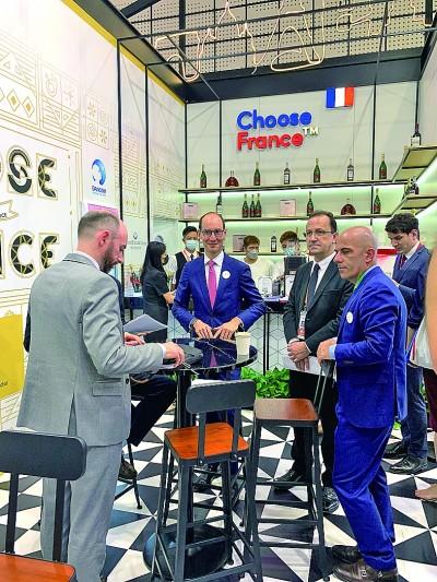 7月26日,參展嘉賓在第二屆消博會(huì)法國(guó)館內(nèi)交流。光明日?qǐng)?bào)記者 曹元龍攝/光明圖片