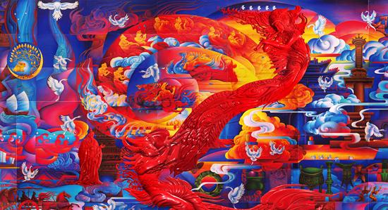 黃小群作品掐絲琺瑯壁畫《遠古的聲音》。