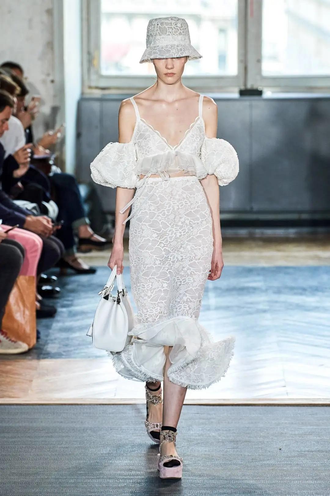 看SPRING 2020 Giambattista Valli秀場上盡是漁夫帽的身影,印象中嘻哈的漁夫帽和禮裙本完全不在一個(gè)頻道,不過設(shè)計(jì)師將傳統(tǒng)漁夫帽帽檐縮窄、增加了蕾絲薄紗后立馬變得和諧了起來,為優(yōu)雅古典的造型增加了一分摩登現(xiàn)代感!