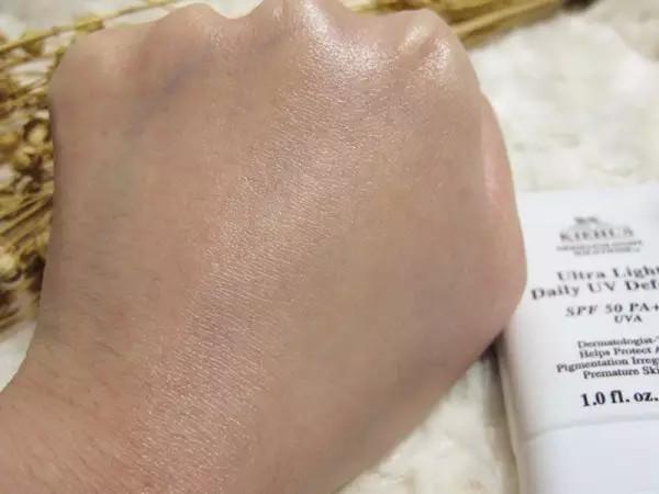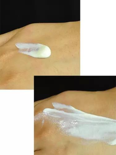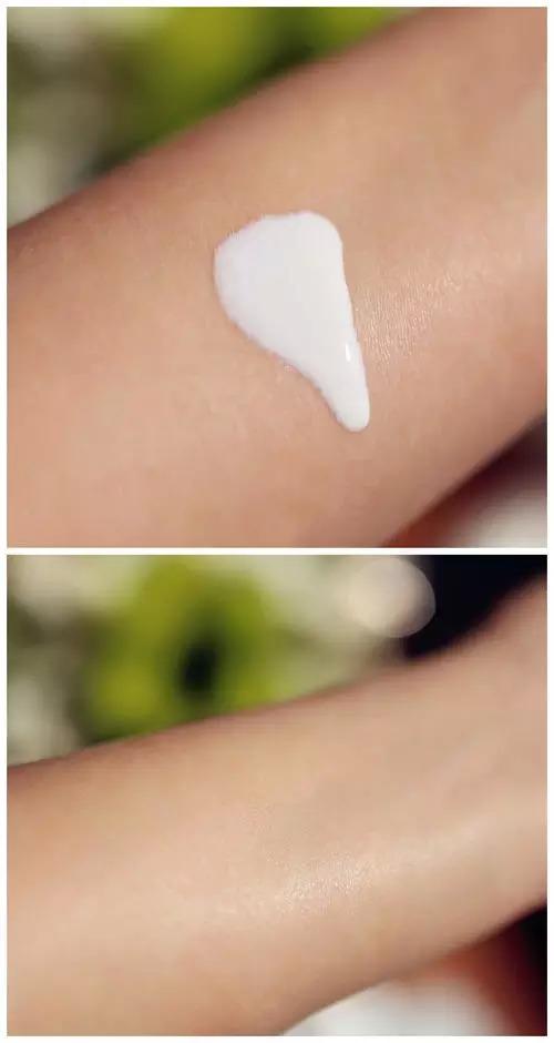 由于使用了二氧化鈦和氧化鋅,所以不可避免的就是泛白的情況出現(xiàn),至少比我的手和臉都要白一些。對(duì)于皮膚白的人來(lái)說(shuō)就是潤(rùn)色效果,對(duì)于皮膚黑的人來(lái)說(shuō)就是日本藝伎效果,大家還是請(qǐng)自行衡量。因?yàn)闆](méi)有香料,所以產(chǎn)品啥味道都沒(méi)有。涂開(kāi)之后沒(méi)有的油光出現(xiàn),物理防曬劑本身就有一定的吸油效果,算是比較好涂勻的。