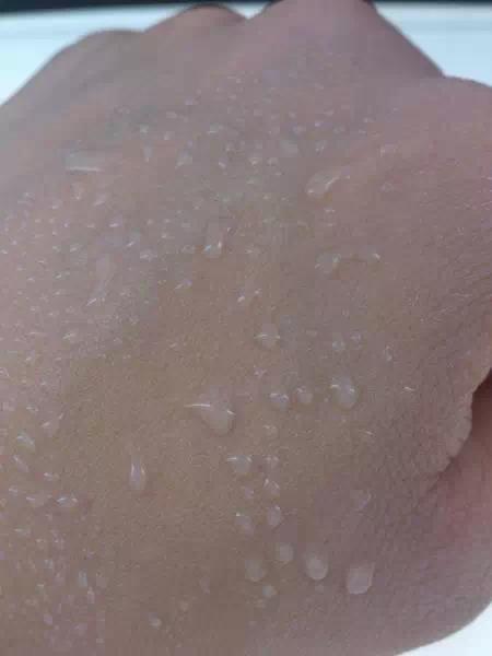 這是噴上水的效果,可以很輕松的判斷防曬是否防水,防水型的防曬水珠都會(huì)被彈開(kāi),不會(huì)形成一片。