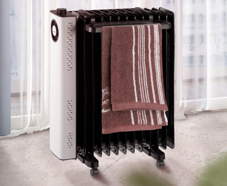 另外,電油汀取暖器屬于密封設計,可以直接在上面或者側面烘干晾曬濕衣服毛巾等,一些濕毛巾或者內衣內褲以及襪子等,洗完了可以放在上面或者掛在旁邊烘干,使用方便。當然烘干衣物等時候,要用低溫檔位,不能放在高溫檔,這樣不。好也不要直接覆蓋,稍微離開一點距離好。