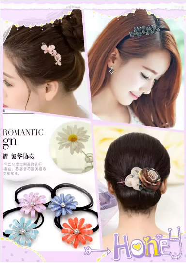 ▲頭飾:發(fā)夾、一字夾、青蛙扣、豎夾、尖夾、發(fā)爪、皮筋、發(fā)箍等幾千款產(chǎn)品。