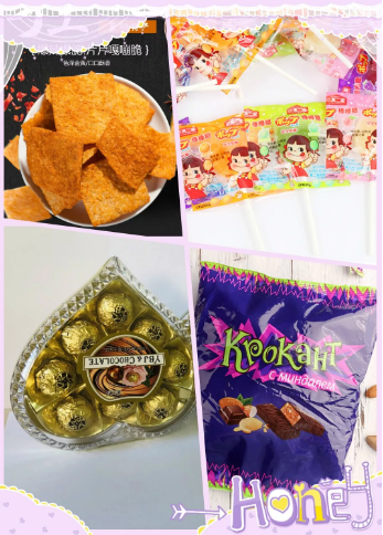 ▲網(wǎng)紅食品:金稻谷棒棒糖、不二家糖果、雅比爵巧克力,紫皮糖等上百款各類零食產(chǎn)品。