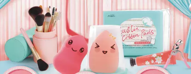 ▲化妝工具:洗臉撲、化妝棉、睫毛夾、修眉刀、眉卡、卸妝濕巾、美容剪、眼皮貼、化妝棉簽、化妝刷,指甲剪等上百款產(chǎn)品。