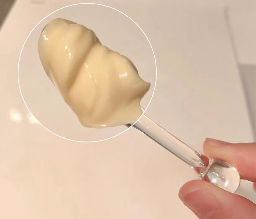它的外包裝樸素,是個(gè)瓷瓶,淡黃色的膏體像奶酪一樣細(xì)膩軟糯,也沒那么厚重,用手搓開乳化一下再上臉,吸收快,還香香的很好聞。