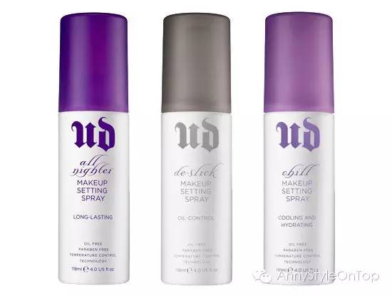 這款噴霧分為三種:All nighter 主打長效持妝,不管怎么熬夜怎么撒潑的玩,就是不脫妝;Chill 是補水鎮(zhèn)靜,干皮用舒爽了,保濕又定妝;還有為油皮設計的 De-Slick。這三款都是妝后使用。