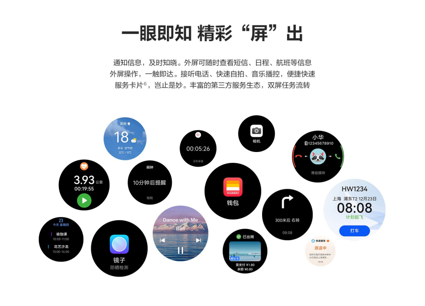 春節(jié)回家路上經(jīng)常需要用手機查看行程信息、各種消息以及支付購物,華為P50 Pocket創(chuàng)新的外屏體驗可以讓你無需開蓋,即可實現(xiàn)通知、日程、日歷、音樂、天氣、支付等主要功能的操作,十分的便捷。