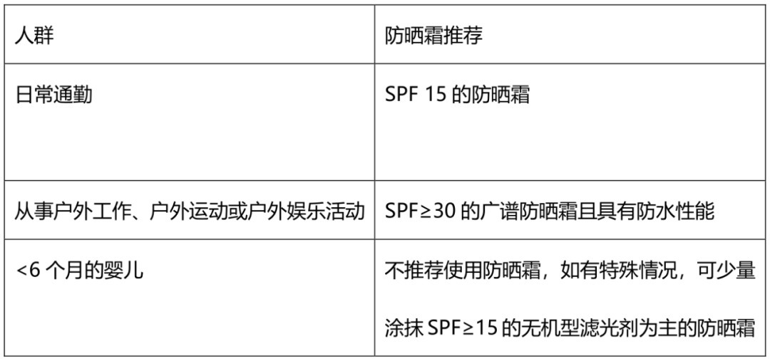 表1 不同人群的防曬霜推薦