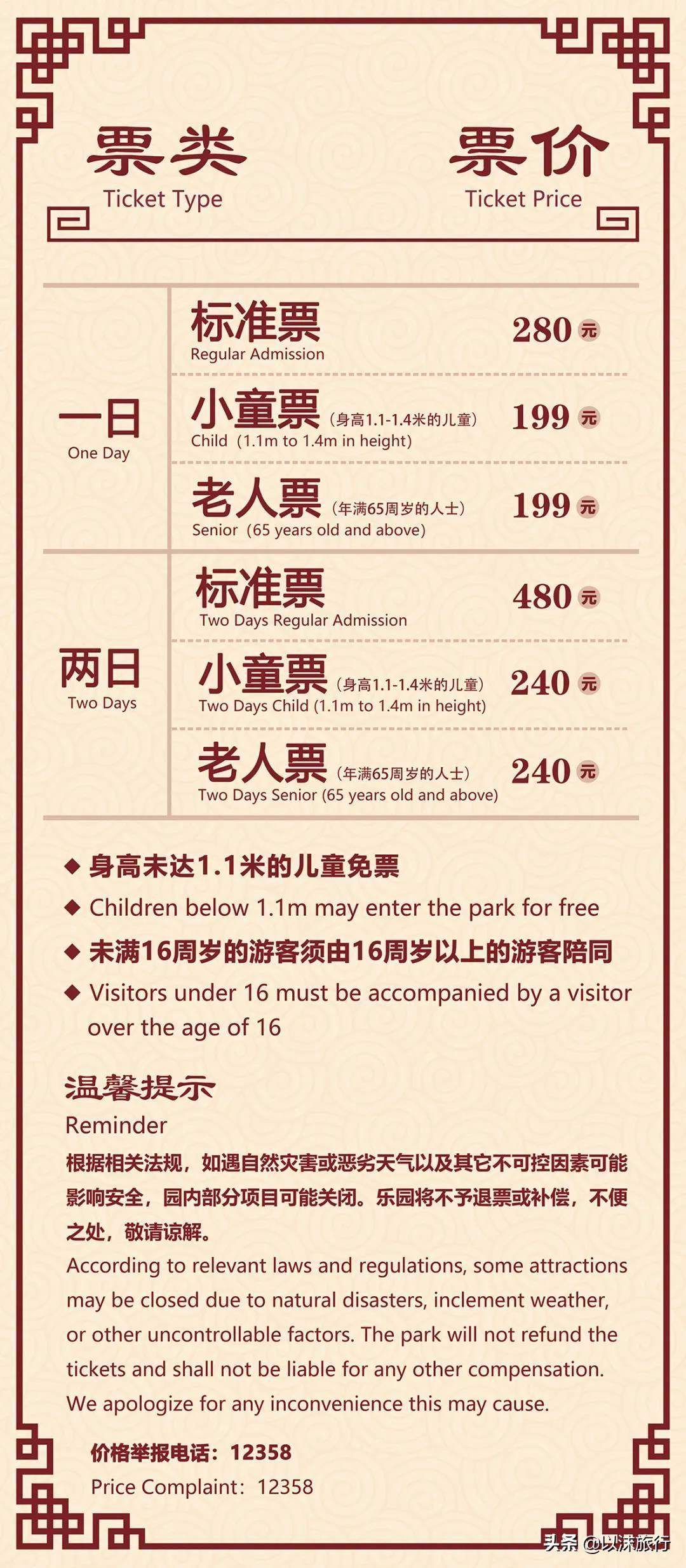 玩轉(zhuǎn)綿陽方特小tips1. 門票價(jià)格分為一日(標(biāo)準(zhǔn)票280元、小童票199元和老人票199元)和兩日(標(biāo)準(zhǔn)票480元、小童票240元、老人票240元)規(guī)格,門票即為通票,樂園內(nèi)項(xiàng)目不再收取額外費(fèi)用。