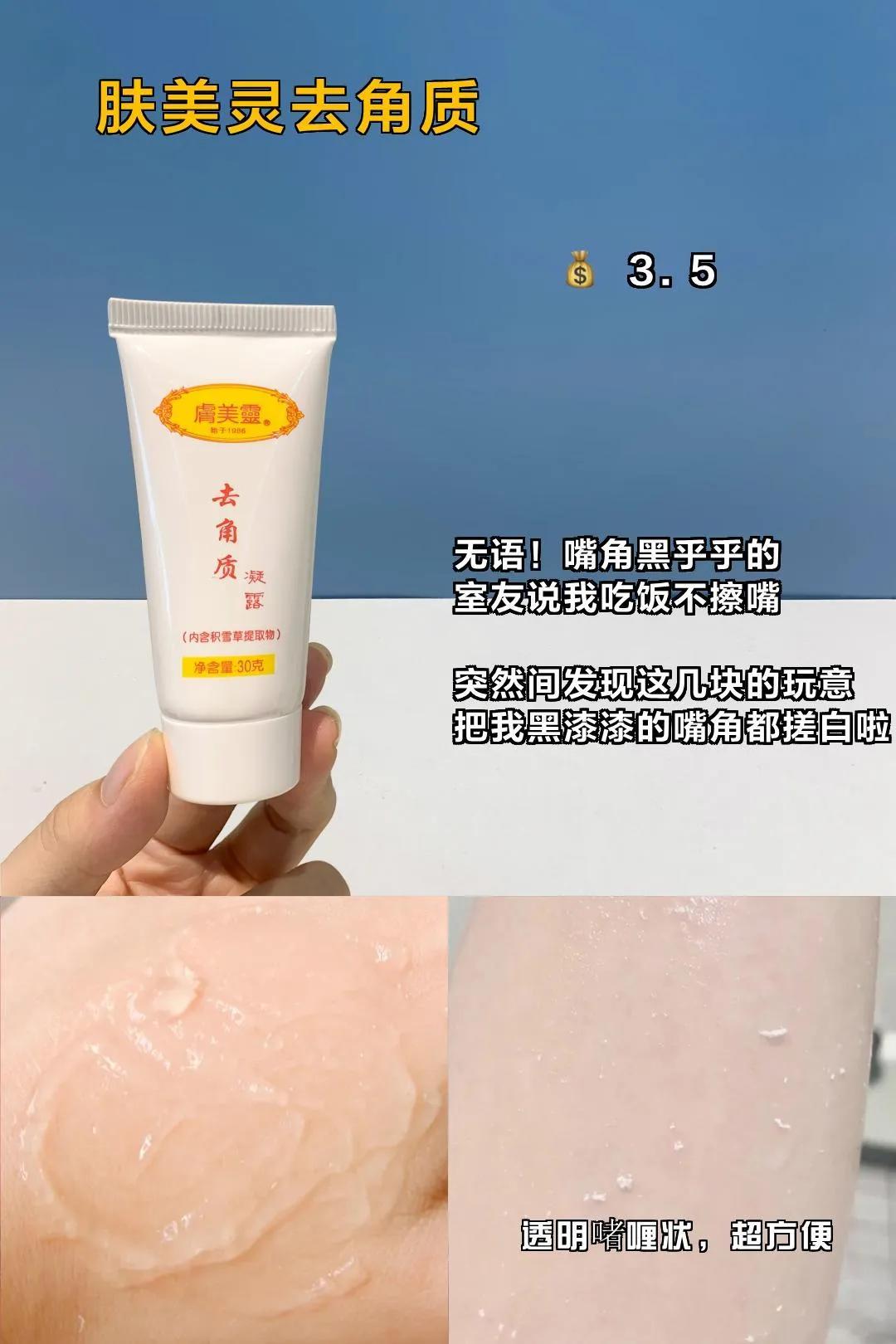 幾塊錢,小小的一支,果卻很驚人。里面添加的尿素囊可以軟化廢舊角質(zhì),揉搓嘴角黑乎乎的東西,嘩啦啦的就掉了。每次我都能搓出一堆死皮,超有成就感。臉蛋子一下看著精致多了。