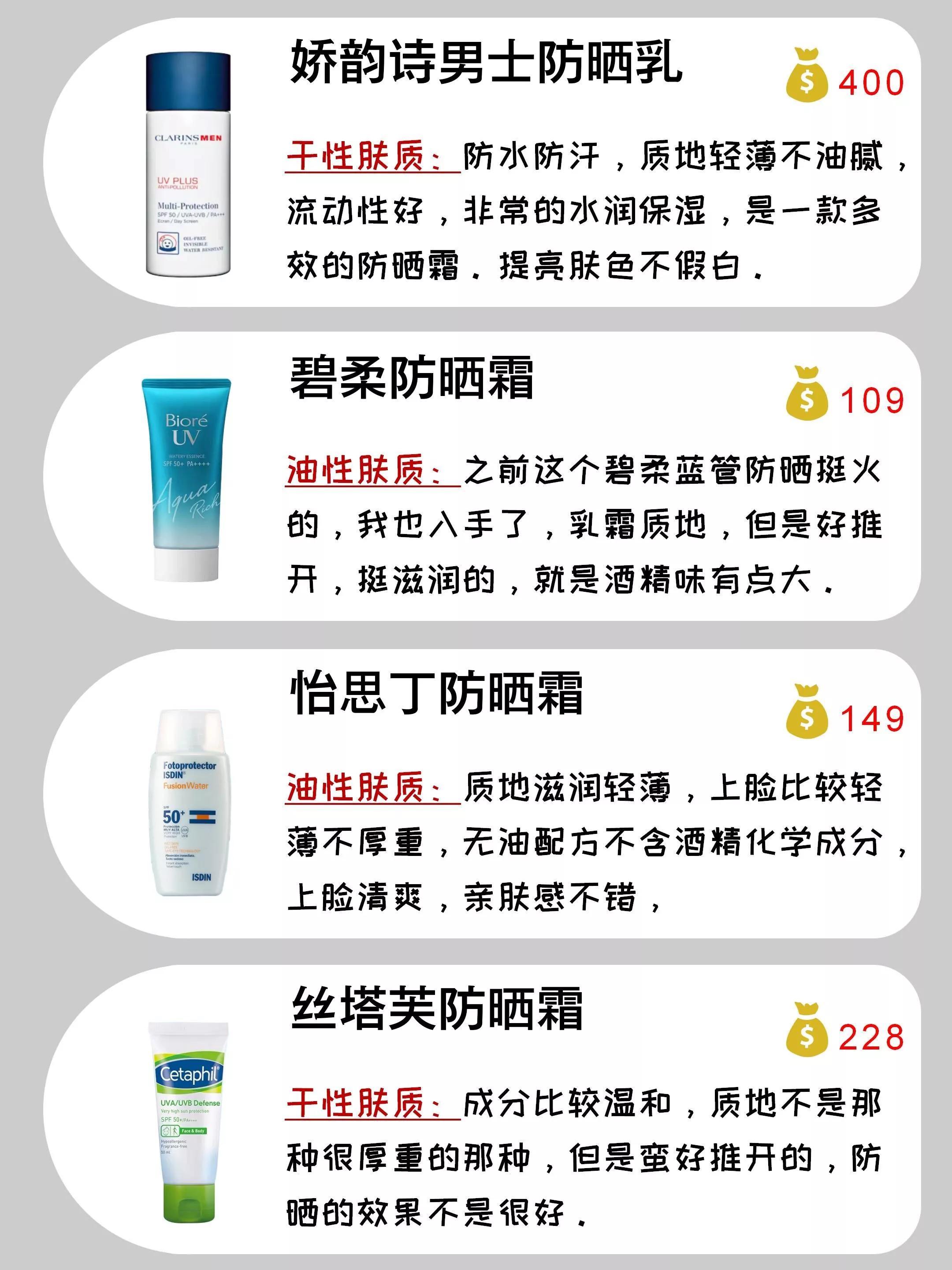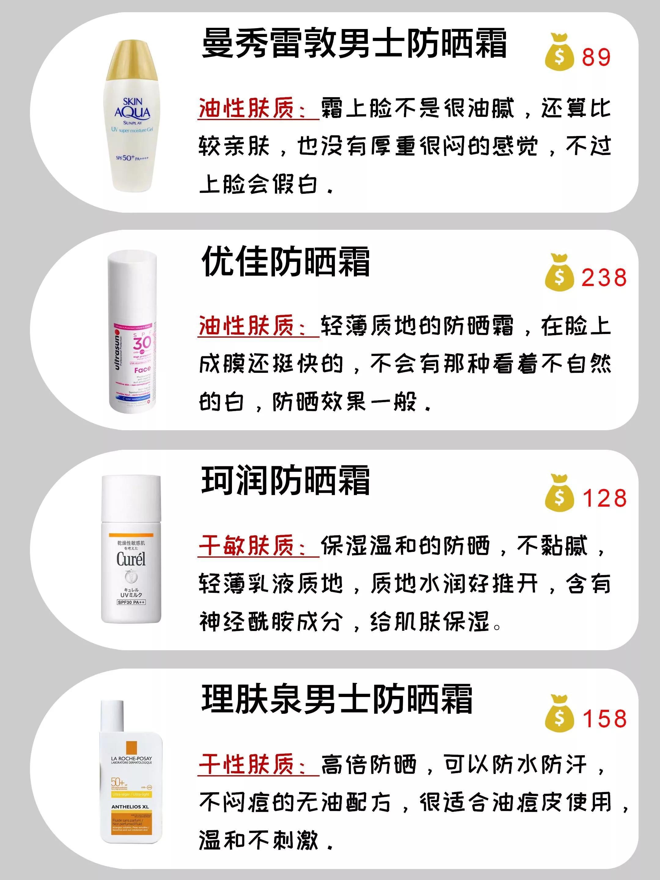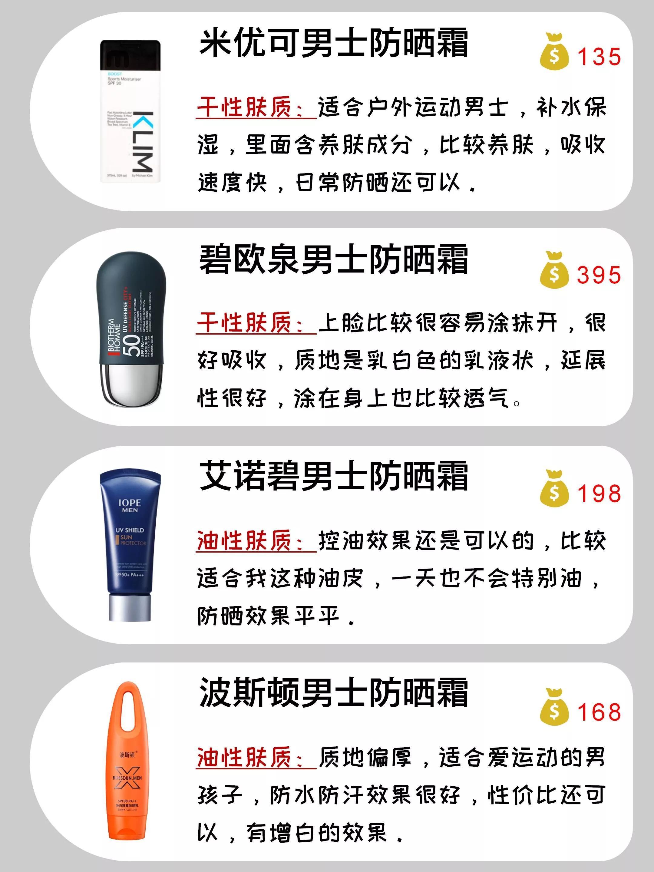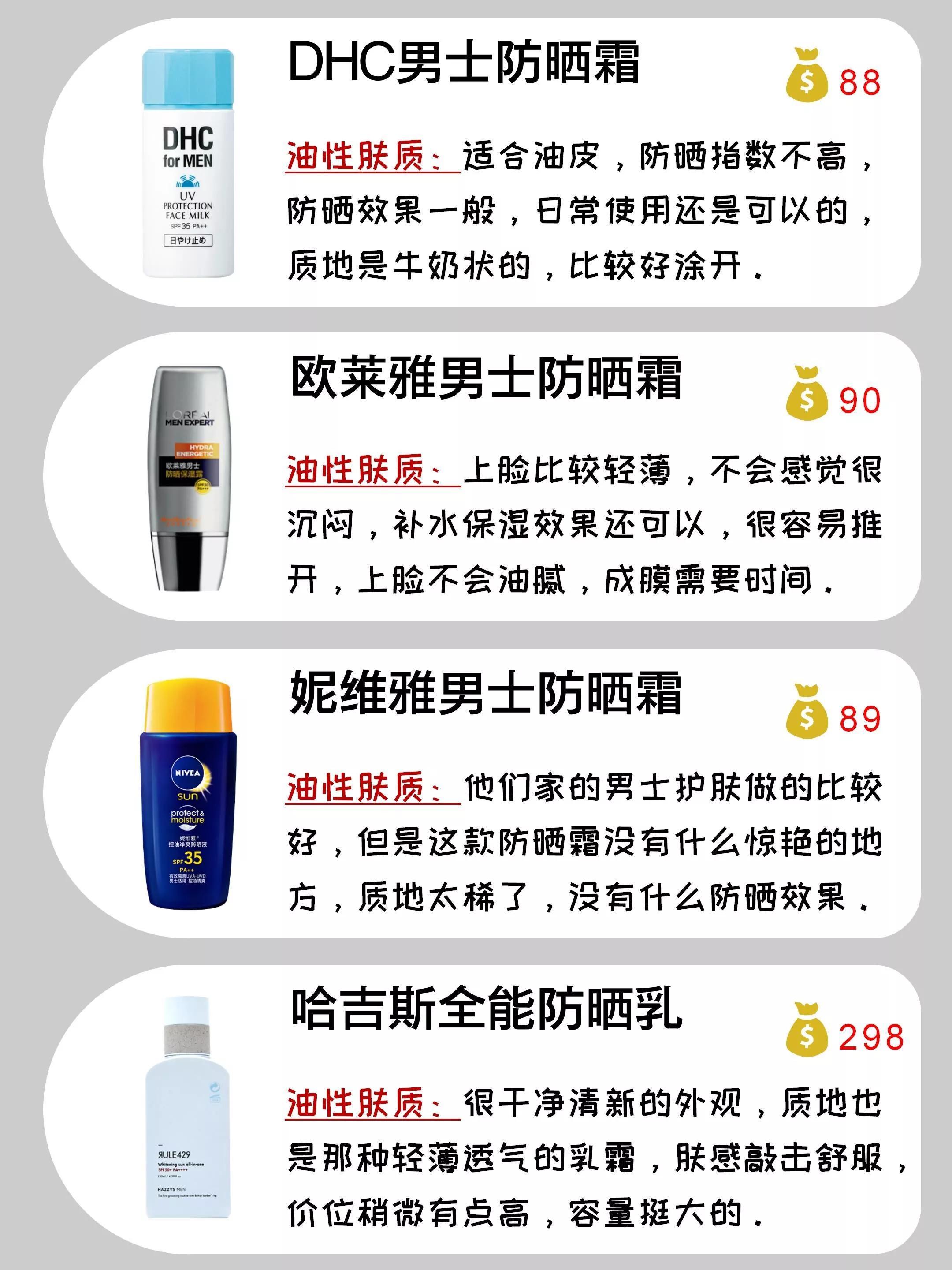 在這里為大家整理出一份男士防曬霜回購榜