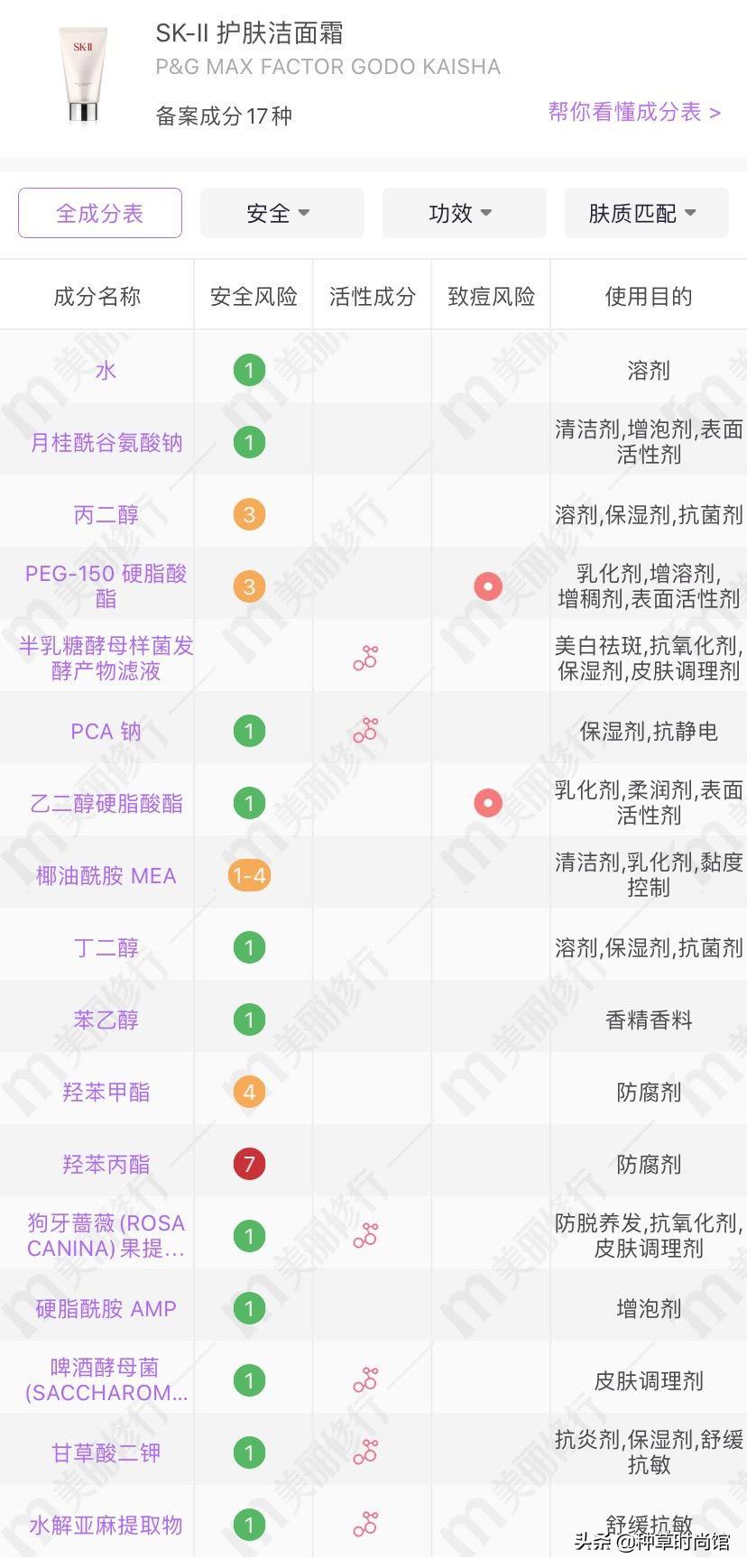 SK2洗面奶以月桂酰谷氨酸表活為清潔劑,整體比較溫和,清潔力中等。里面還加入了水解亞麻物,用來舒緩皮膚。
