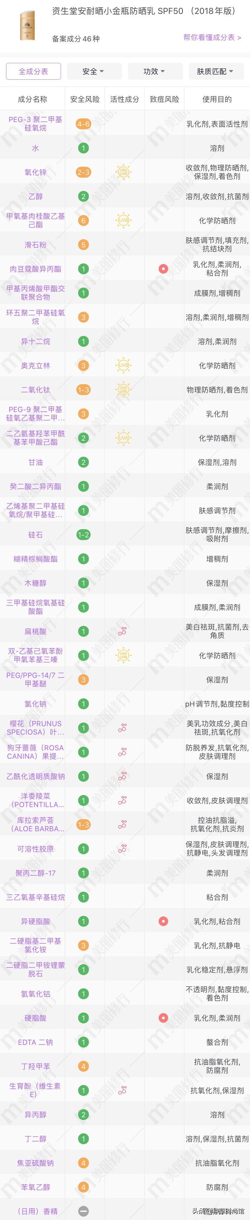 馬上查了一下它的成分,它是一款物化結(jié)合的防曬霜,添加了腺苷、煙酰胺、積雪草這些成分,關(guān)鍵是 沒色素沒酒精 !