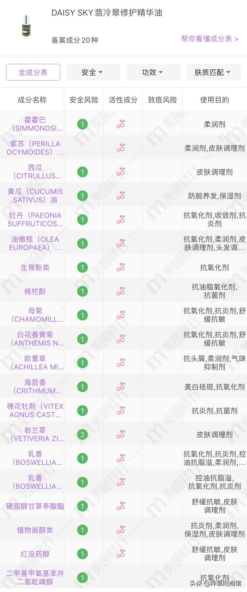 黛珂紫蘇水主要以抗炎保濕為主,抗氧化為輔,使用了迷迭香、歐百里香、鼠尾草、丁香花提取物復(fù)配,來抑制促發(fā)炎因子的釋放,舒緩消炎的果很Nice(對痘痘果一級棒,親測