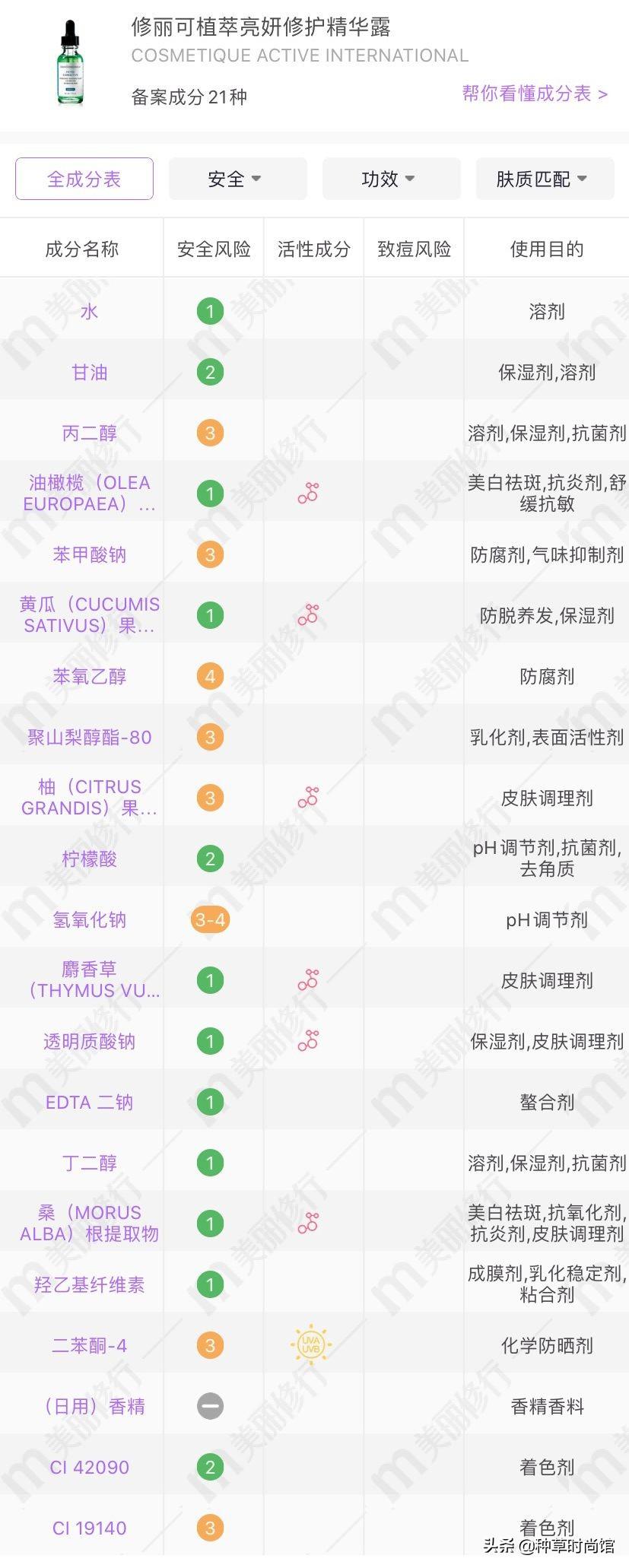 色修主要成分是天然植物提取物,通過植萃來溫和地達到舒緩、消炎的果,對新生紅色痘印和紅血絲比較友好。但是這款里面添加了酒精,敏感肌使用之前要測試一下喲~
