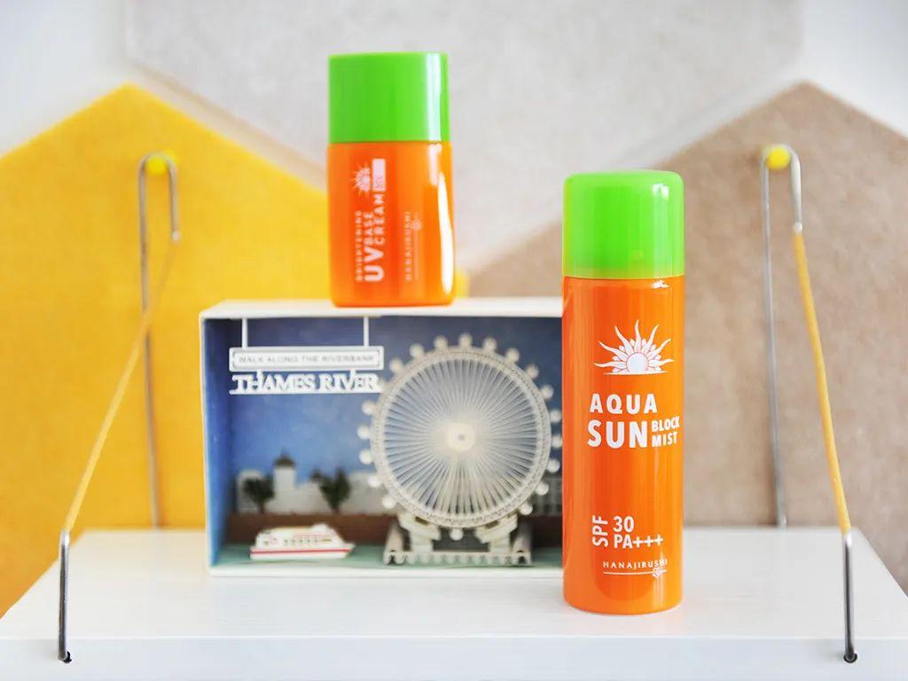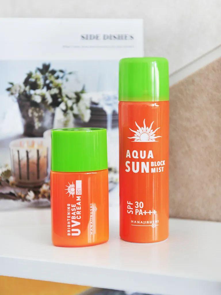 另一款則是主打輕薄如空氣的「花印戶外清潤防曬噴霧」(右),