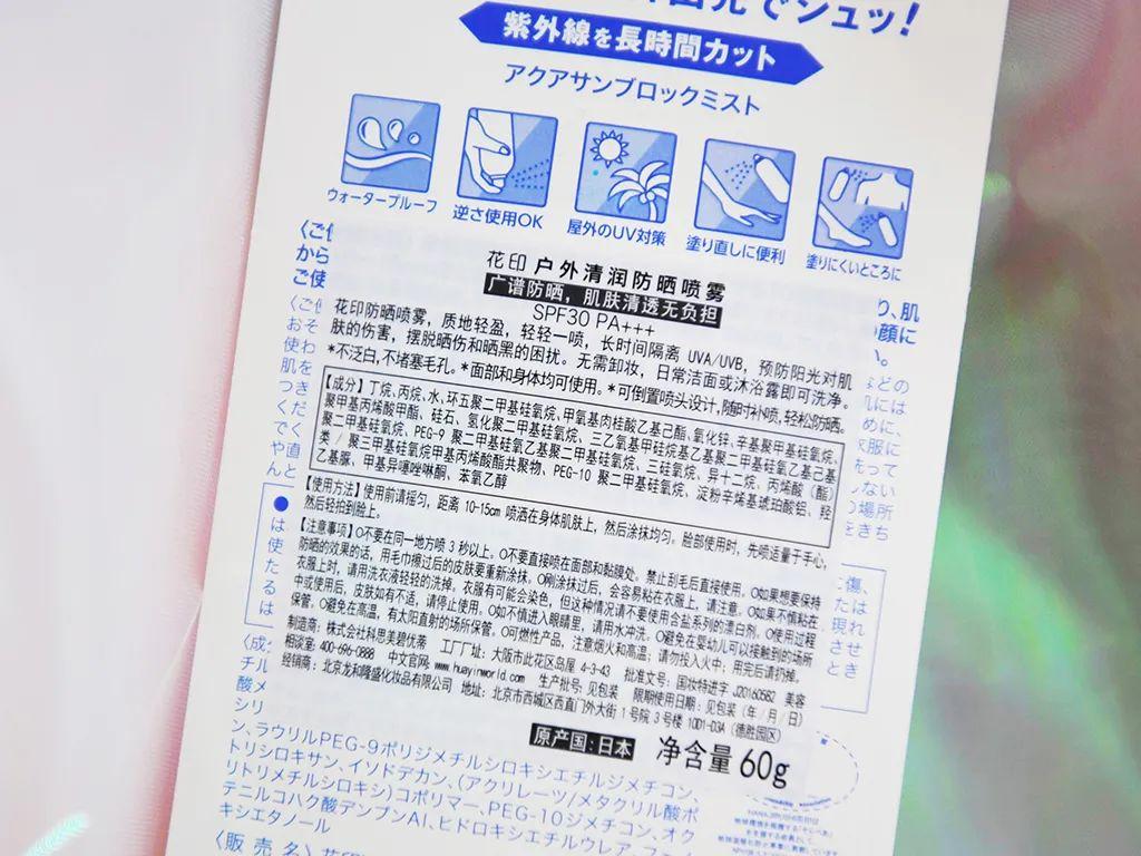 「花印戶外清潤防曬噴霧」需要在使用前搖勻,