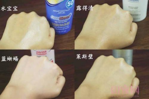 在今天進行對比測評的四款防曬噴霧中,水寶寶是50倍防曬;露得清是30倍防曬,PA+++,防曬等級屬于比較高的;藍蜥蜴作為物理防曬,SPF30就等同于化學防曬的SPF50了;而萊斯璧水晶防曬則是SPF50,PA+++。