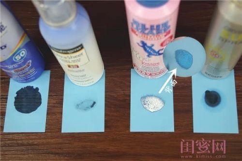 如圖所示,露得清為清爽;藍蜥蜴作為物理防曬,主要成分有氧化鋅,所以噴霧剛噴出來是白色的,也是因此,它還可以幫助我們提亮膚色哦~那就通過吸油紙背面的滲透長度來判斷,可見,藍蜥蜴的清爽度僅次于露得清;接下來是萊斯璧,后是水寶寶~