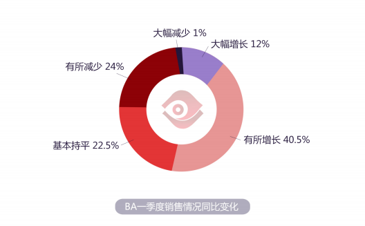 值得一提的是,參與調(diào)研的BA中,21%的人表示相比去年,今年購買防曬產(chǎn)品的顧客數(shù)量有所增加。同時,40.5%的BA表示一季度防曬產(chǎn)品銷售情況同比有所增長。