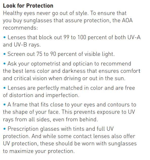 -02-怎么給寶寶選太陽鏡?為此我還真的查了一下AAP(美國兒科學(xué)會)、AAO(美國眼科學(xué)會)和美國視覺協(xié)會(AOA),前兩者比較籠統(tǒng)只對太陽眼睛的遮擋率做了建議,比較詳細的是AOA: