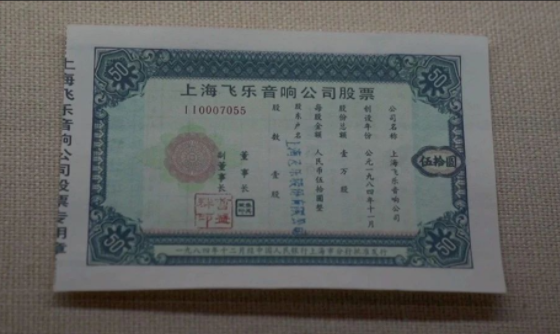 在中國證券博物館,有一張看起來不起眼的小紙片,上面印有“上海飛樂音響公司股票”字樣。1984年11月14日,上海飛樂音響股份有限公司股票公開發(fā)行,這是新中國歷史上第一次嚴(yán)格意義上的股票發(fā)行。1986年11月,會見時任紐交所董事長范爾霖,將一張“小飛樂”股票作為禮物贈送給遠(yuǎn)道而來的客人。