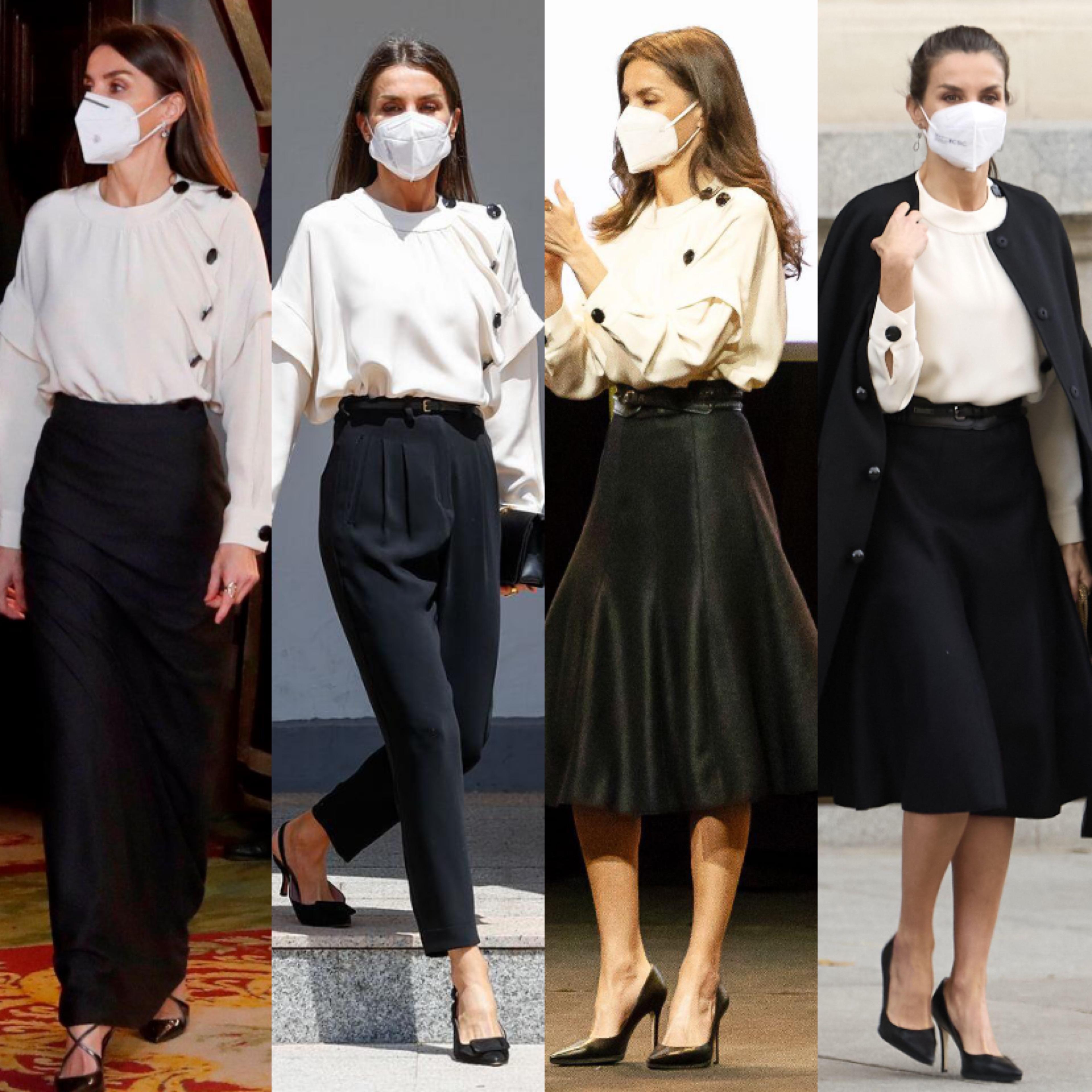 或許是女兒吃了第一口螃蟹反饋味道還不錯(cuò),2021年的開(kāi)年活動(dòng)中,萊蒂齊亞王后也入手了一件maksu的上衣,這是一件象牙色府綢面料的上衣,左側(cè)有黑色紐扣設(shè)計(jì),有設(shè)計(jì)感卻并不花哨,她從入手至今,已經(jīng)穿過(guò)4次了,利用率高,搭配裙裝褲裝都可以,算得上衣櫥里的春秋百搭上衣。