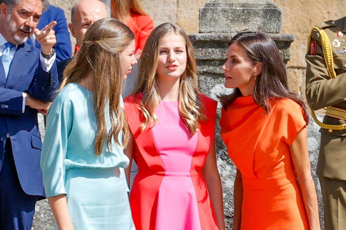 萊后在今年的圣地亞哥國(guó)祭儀式中,也選擇了他們家的橙色連衣裙,不規(guī)則領(lǐng)口和不規(guī)則腰身都是品牌特色,有一點(diǎn)“小性格”,卻又不背離優(yōu)雅底色,母女倆穿出來(lái)比例都很好。