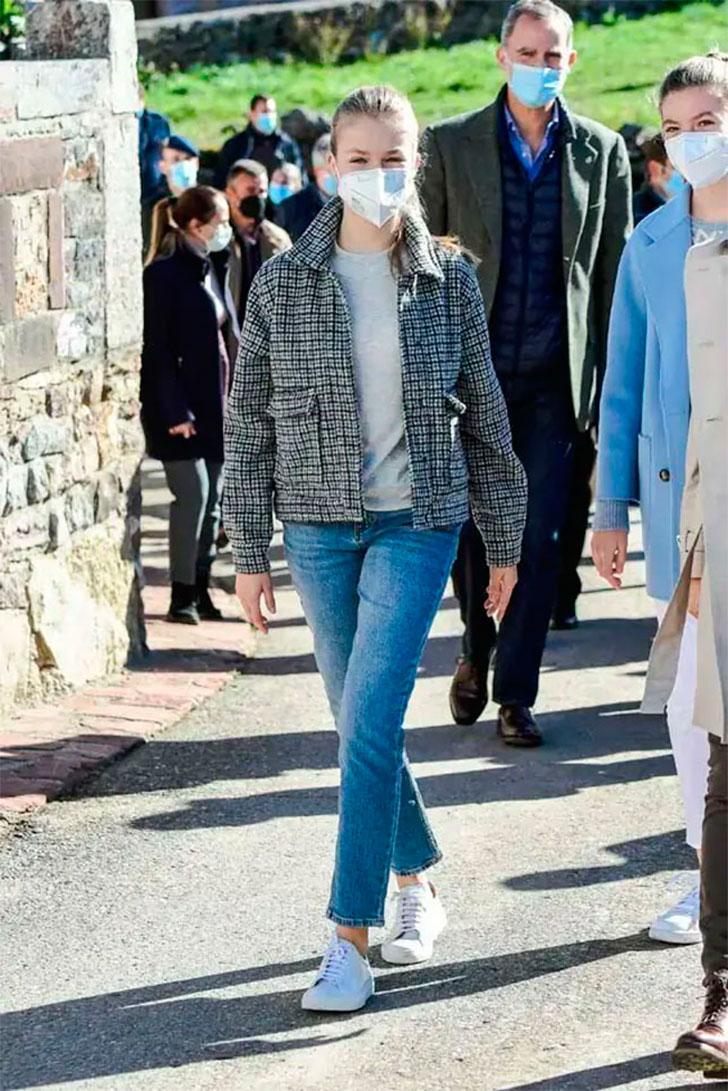 萊昂諾爾在2021年穿過(guò)一件黑白格紋外套,索菲亞公主在夏季度假中穿過(guò)他家的套裝裙和背帶褲。