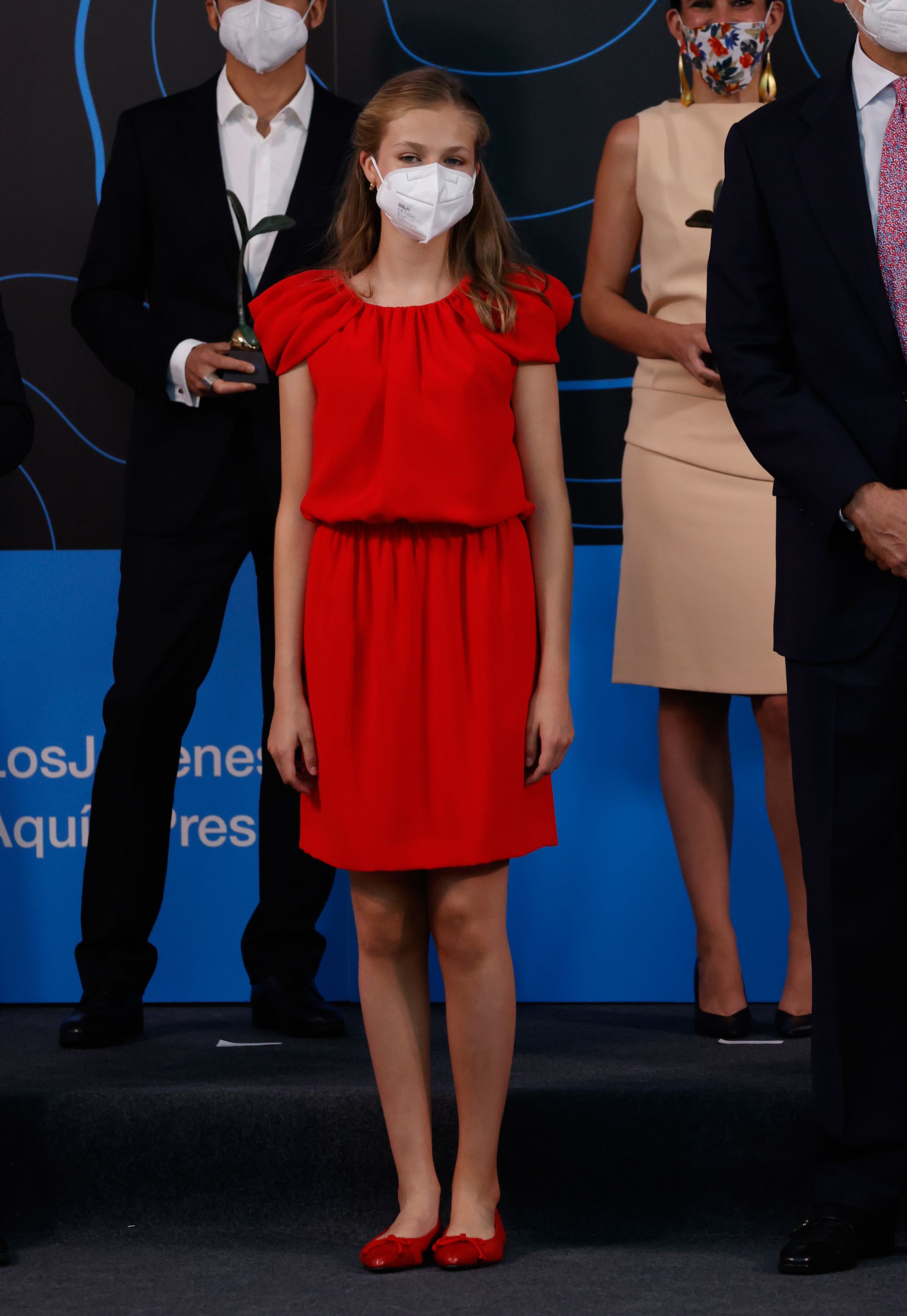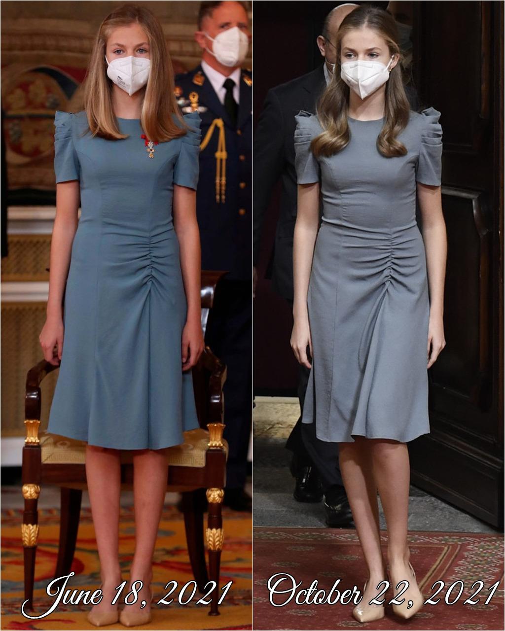 她在2020年赫羅納公主獎(jiǎng)和2021年阿斯圖里亞斯公主獎(jiǎng)?lì)C獎(jiǎng)禮當(dāng)天,都選擇了該品牌的連衣裙,比前面她穿過(guò)的品牌更正式,比bruna更適合萊昂諾爾公主的小骨架。