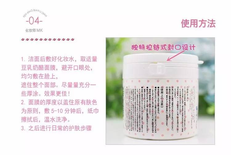 這款日本超人氣面膜,梨花、不老仙妻的強推~樂天網(wǎng)上商城連續(xù)銷售量第一的面膜呢!含有豆乳精華、維生素E、蜂蜜紫蘇成分,可以美白柔嫩肌膚,抗氧化果棒棒噠!Q滑如同豆乳一樣的質(zhì)地,上臉后有淡淡的奶香味,十分的愜意~全天然的成分,敏感肌的小主不容錯過哦!當(dāng)然干皮油皮也同樣適用呢~