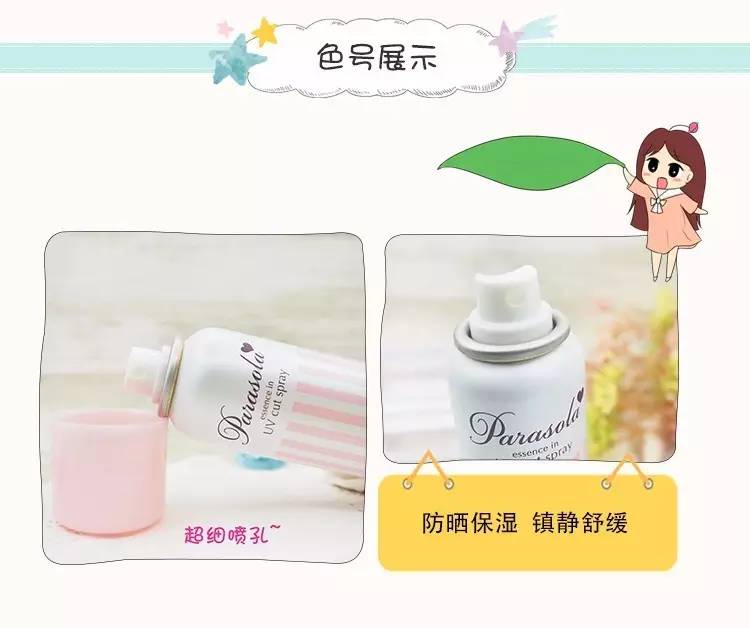 COSME大賞防曬部門第二名,COSME大賞防曬噴霧類第一名,日本女生票選愛防曬噴霧類型第一名……10個手指+10個腳趾都數(shù)不完!防曬噴霧用來補防曬好,方便省心,帶妝的情況下也可以直接噴,不會糊掉妝面!娜麗絲的這款,質(zhì)地之輕薄、噴霧之細(xì)膩與BIOLADY無異,特點在于蘊含保濕精華以及蘆薈萃取物、膠原蛋白和玻尿酸等6種美容成分,在防曬的同時兼顧保濕,干皮妹砸看過來!防曬值達(dá)到了SPF50+/PA++++,防水防汗不易掉,就算你要去海灘陽光浴也不怕。還有這么粉嫩嫩的包裝,啊啊我的少女心被炸出來了,錢包君飛出去了~