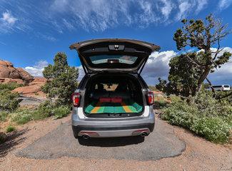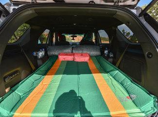 有時(shí)候,由于下雨或降溫,我們就沒睡帳篷,把行李都放帳篷里,然后第二排放倒,鋪上氣墊,把睡袋拉開變成被子,晚上開點(diǎn)小窗,睡得也挺舒服的,前提是要租一臺(tái)大SUV。不足就是出入不方便。
