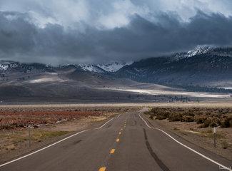 北上的395公路一路上都是雪景,跟昨天的死亡谷荒漠景觀形成了強(qiáng)烈的反差:
