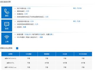 四,通信當(dāng)?shù)刂饕謾C(jī)運(yùn)營(yíng)商有:AT&T(信號(hào)范圍廣,價(jià)格適中)、Verizon(信號(hào)質(zhì)量好,價(jià)格偏貴)、T-mobile(信號(hào)較差,但便宜,而且有internet data包月服務(wù)),還有很少人用的Sprint。本人建議,如果逗留時(shí)間超過十天,用網(wǎng)比較多的,可以買當(dāng)?shù)氐膕im卡,一般60-80美金左右,有贈(zèng)送話費(fèi)和1G流量了。但如果逗留時(shí)間短就一周左右,對(duì)網(wǎng)絡(luò)要求不高,偶爾就是發(fā)發(fā)微信,用中國(guó)移動(dòng)通漫游也可以的,詳情可以看下面的中國(guó)移動(dòng)通美國(guó)漫游資費(fèi)表。