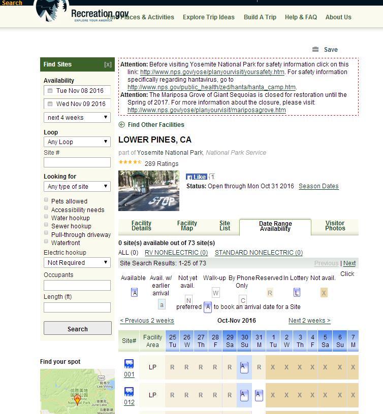 以上四個(gè)營(yíng)地,都可通過http://www.recreation.gov/預(yù)訂,直接搜Yosemite即可。