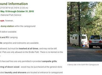 開放時(shí)間為5月中至10月底(2016年的信息,好預(yù)訂前再確認(rèn)當(dāng)年情況),營(yíng)位87個(gè),普通營(yíng)位18-25美金一晚,大號(hào)營(yíng)位50美金一晚。