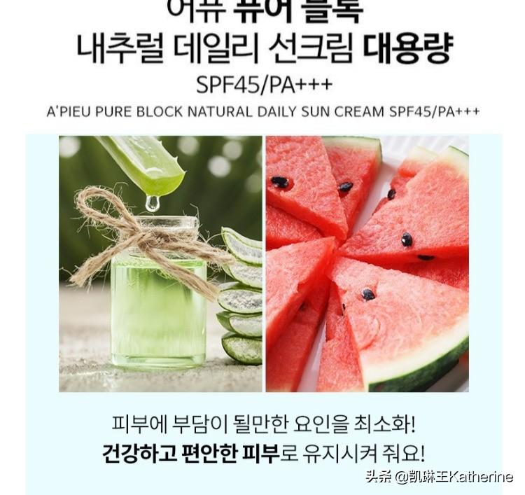 這款防曬霜性價(jià)比高,一管50ml不到50,淡淡的橘子味,淡黃色膏體,看配方說是富含西瓜和蘆薈的提取物,也是很清爽的配方,上臉很輕薄,完全沒有厚重的悶的感覺,很好推開吸收度很快。
