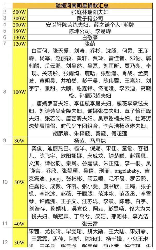去年河南暴雨引發(fā)了一系列的災(zāi)情,明星們也紛紛發(fā)揮帶頭作用給河南災(zāi)區(qū)捐款。