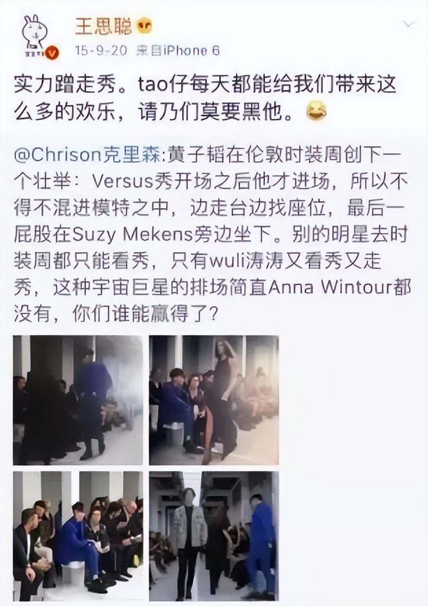 后來在黃子韜參加完倫敦時裝周之后,王思聰也不忘調(diào)侃黃子韜是實力蹭走秀。