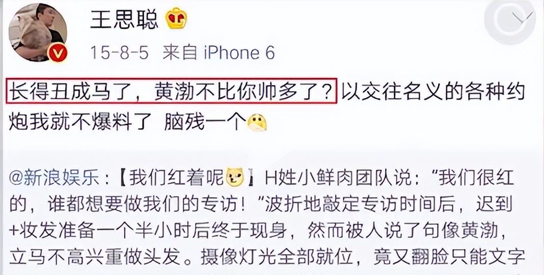 王思聰更是直接替黃渤打抱不平,帶頭怒罵黃子韜長得像馬一樣。