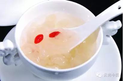 【制作方法】準(zhǔn)備銀耳100g、枸杞適量、冰糖適量,將銀耳去根后,放入鍋中,加入適量冷水至煮沸后,用慢火燉,待冷后即可食用。