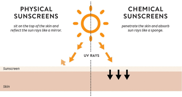 眾所周知,防曬霜一般分為物理防曬和化學(xué)防曬兩種主要的防曬方式。其中物理防曬一般指含有活性礦物質(zhì)成分如二氧化鈦 / titanium dioxide、氧化鋅/ zinc oxide這些礦物質(zhì),利用礦物分子形成的保護層對紫外線進行反射、折射、散射來阻擋陽光的傷害;而化學(xué)防曬則通過化學(xué)物質(zhì)將紫外線吸收分解掉。